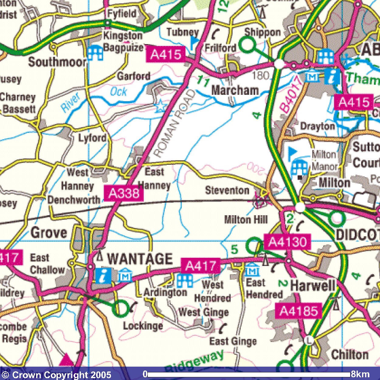 Except for 1 mile at the start and 1.5 miles at the end, the route for today follows the line of the old Wiltshire and Berkshire Canal. So it's northwards out of Childrey to find the Canal at West Challow. Although not marked on the adjacent map, the OS Explorer map implies that this section of the Canal has water in it. The route follows the Canal which goes eastwards to East Challow (which is on the second map below). The Canal then goes alongside the southern outskirts of Grove and appears as the blue line that is just to the east of Grove on the map below. The Canal then turns northeastwards making a bee-line for the Thames at Abingdon. Here there are places on the OS Explorer map where the line of the Canal is not marked in blue, and presumably it may be more difficult to track where it actually goes. The route leaves the Canal momentarily to cross the A34, and then tries to follow it through the housing estates of Abingdon. There is a Wilts and Berks Canal sign at the point where it joins the Thames. |